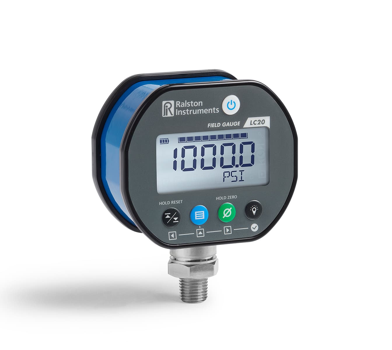 The LC20 is a robust device that measures and displays pressure readings on a large, backlighted screen. The LC20 has the ability to show High and Low pressure values on-screen, change between 15 different engineering units or add custom engineering units. The included PC FieldLab Desktop software can be used for calibration, testing and live viewing of pressure.