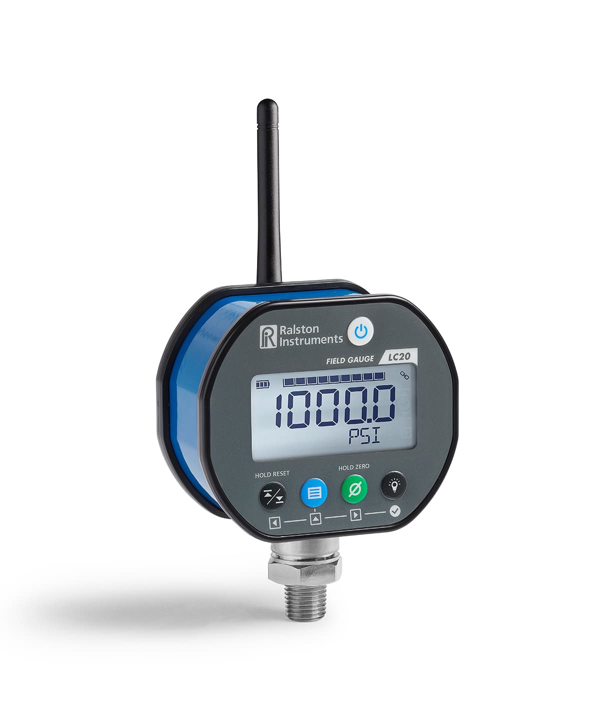 The LC20 is a robust device that measures and displays pressure readings on a large, backlighted screen. The LC20 has the ability to show High and Low pressure values on-screen, change between 15 different engineering units or add custom engineering units. The included PC FieldLab Desktop software can be used for calibration, testing and live viewing of pressure.