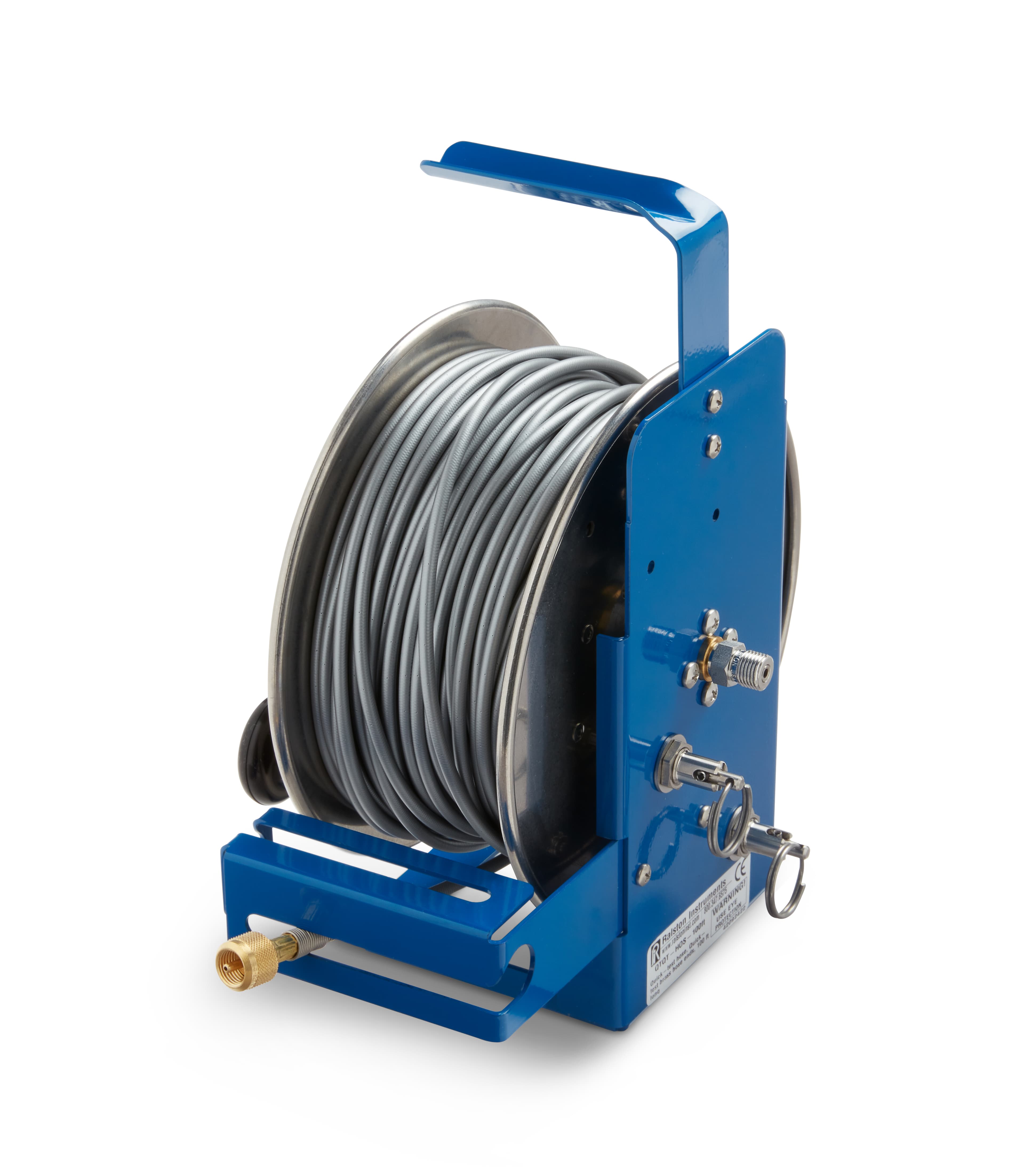 The Quick-test hose reel is an innovative solution for storing Ralston Quick-test hoses. It includes inlet and outlet ports, a brake and locking pin and multiple mounting options.