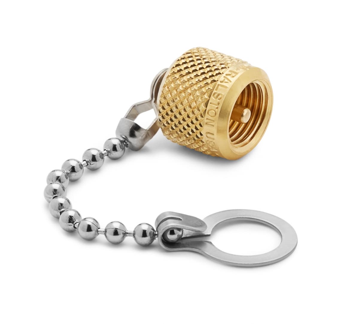 Cap and chain for any male Quick-test adapter with a cap and chain