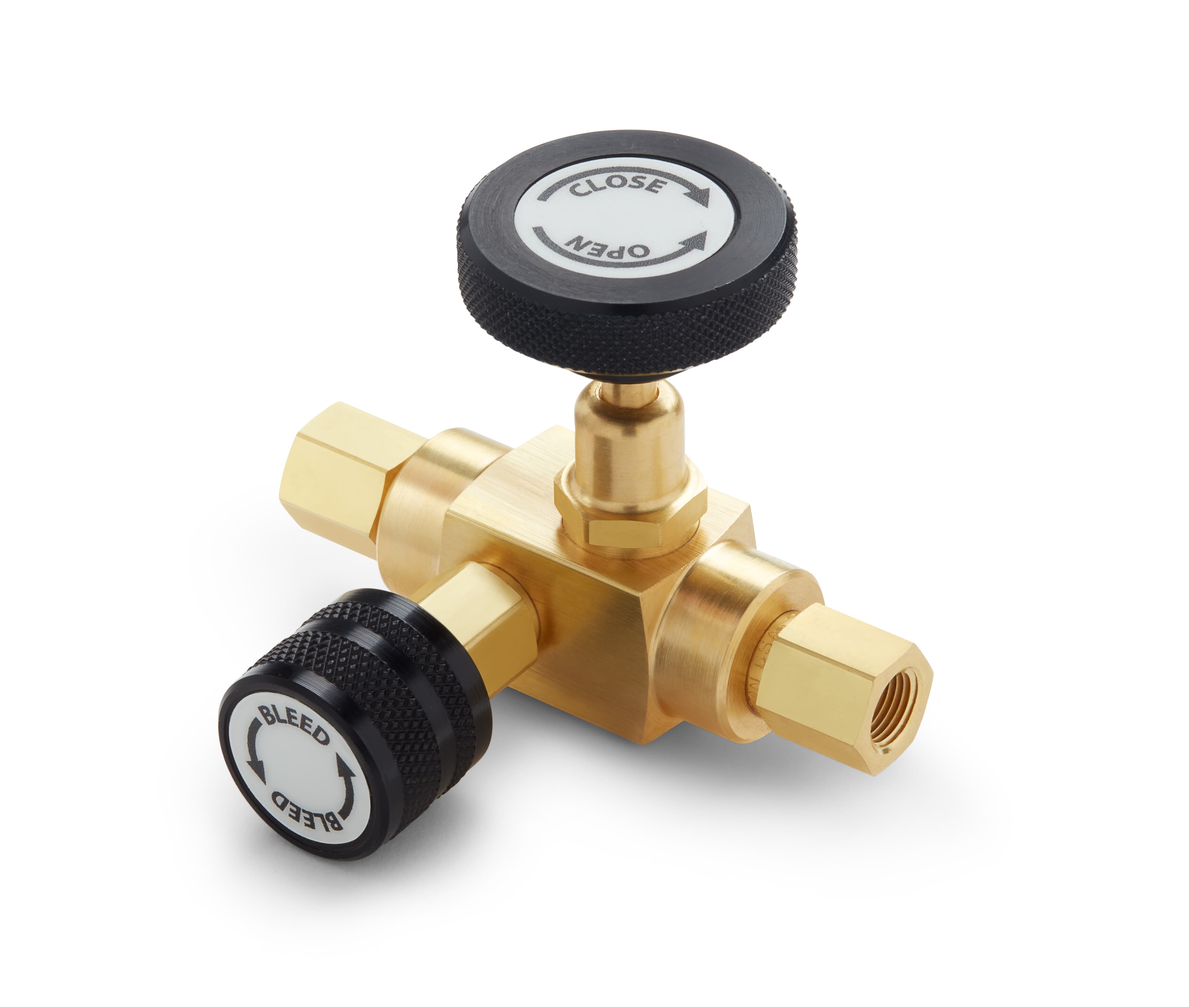 Block & bleed valve - 1/8" female NPT inlet x 1/8" female NPT outlet, brass