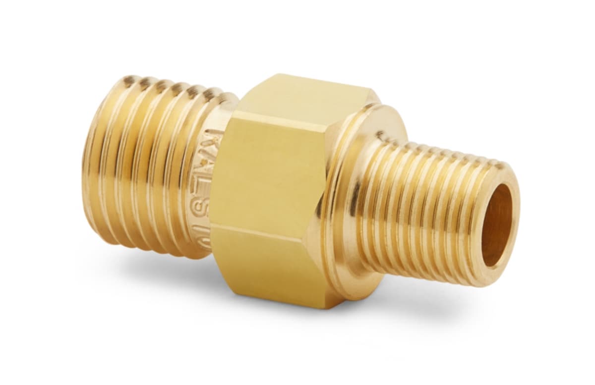 Connects Female BSPT (ISO 7/1) taper pipe thread to Quick-test hose using thread sealant and a wrench