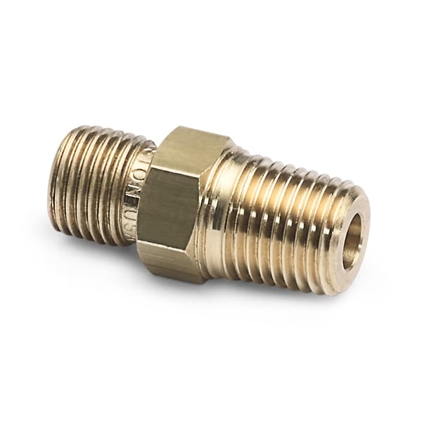 Connects Female BSPT (ISO 7/1) taper pipe thread to Quick-test hose using thread sealant and a wrench