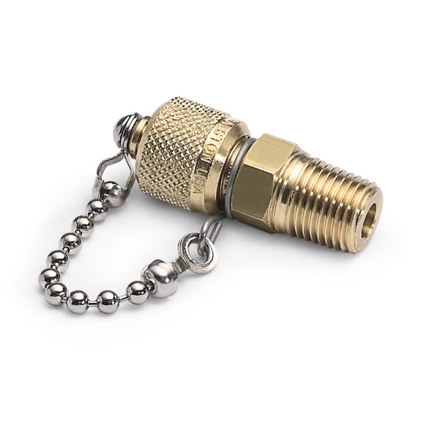 Connects Female BSPT (ISO 7/1) taper pipe thread to Quick-test hose using thread sealant and a wrench