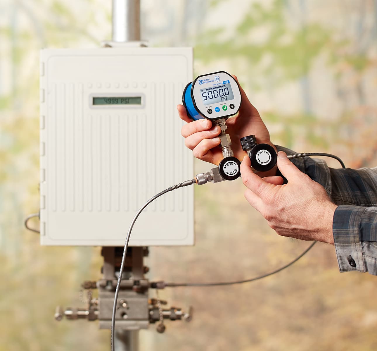 Perform static pressure calibrations using nitrogen with included calibration manifold, pressure gauge and hoses