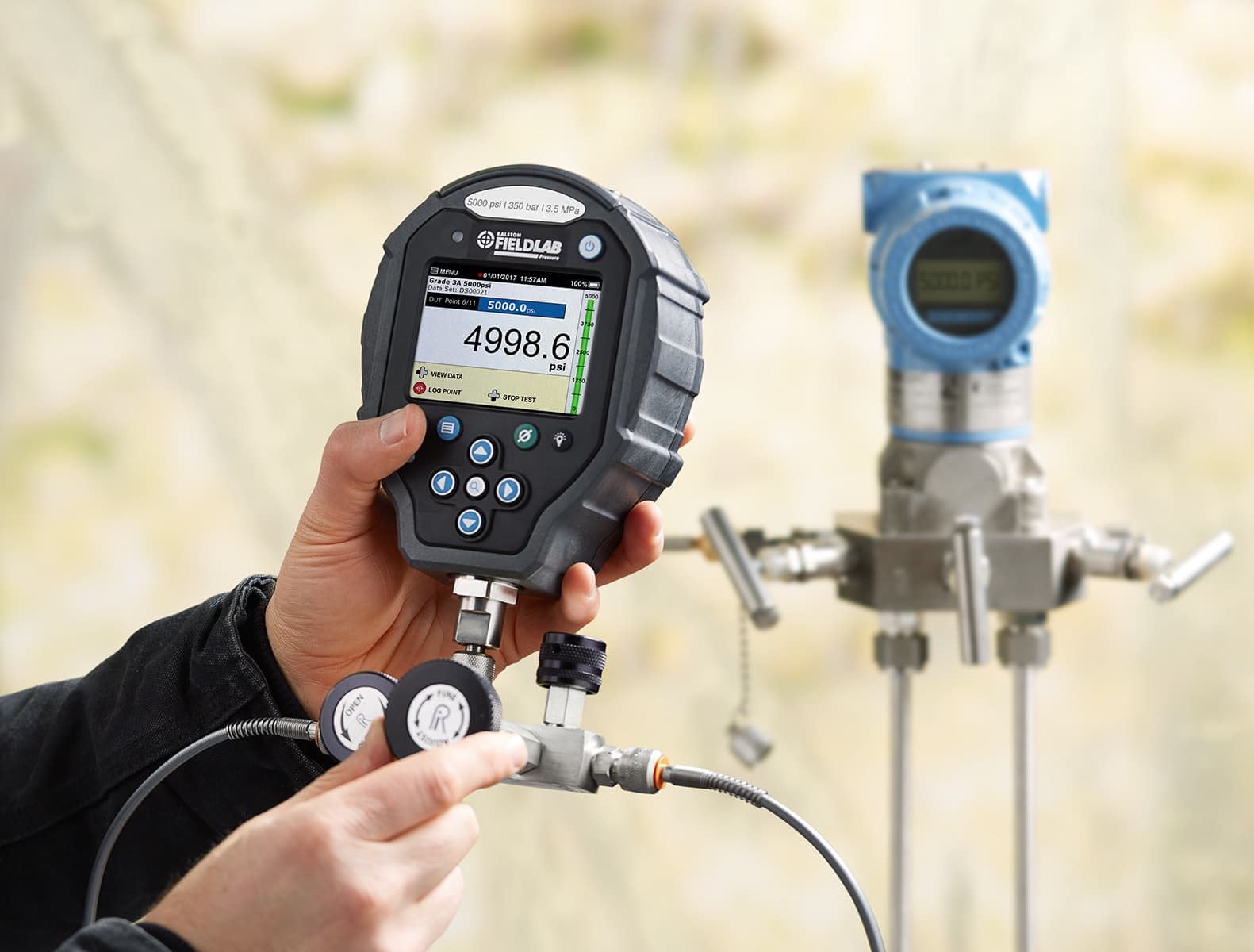Perform static pressure calibrations using nitrogen with included calibration manifold, pressure gauge and hoses