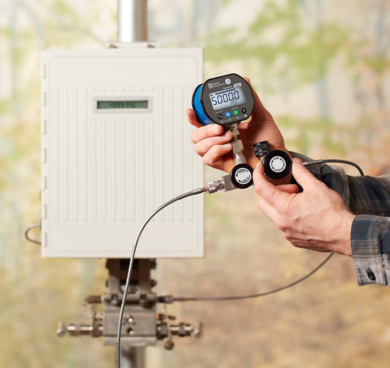 Perform static pressure calibrations using nitrogen with included calibration manifold, pressure gauge and hoses