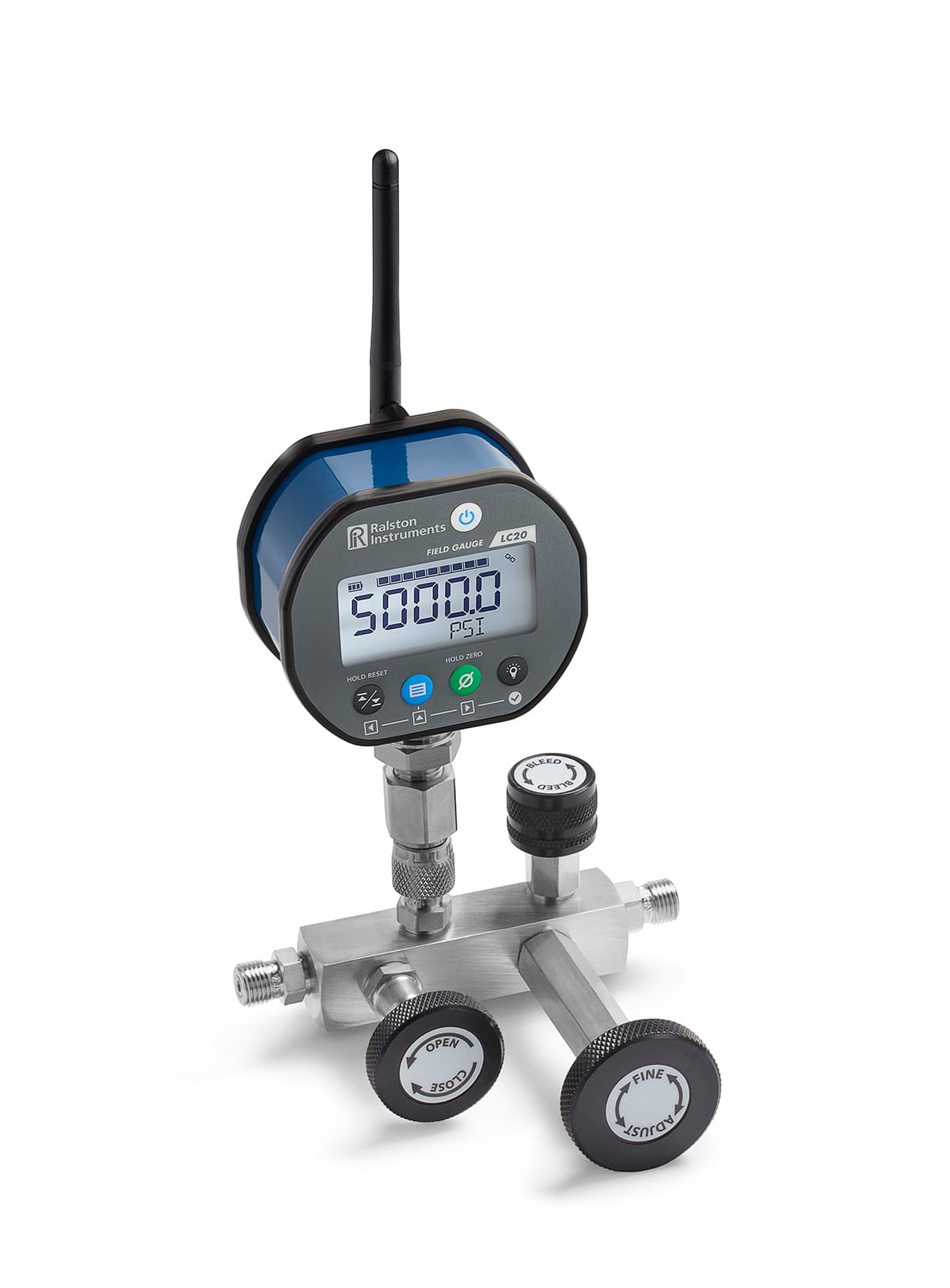 Perform static pressure calibrations using nitrogen with included calibration manifold, pressure gauge and hoses