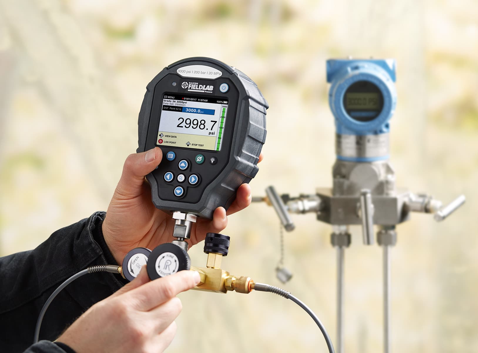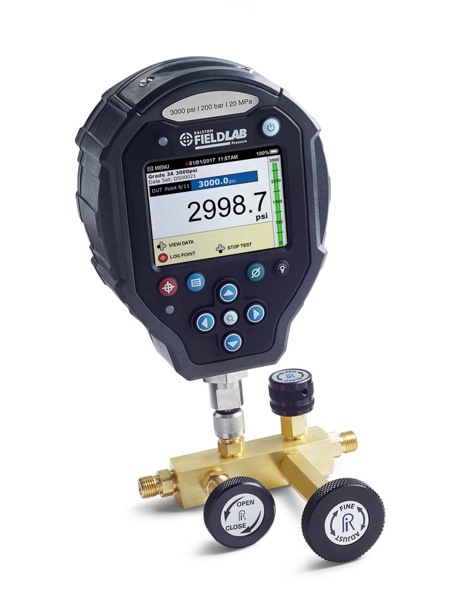 Perform static pressure calibrations using nitrogen with included calibration manifold, pressure gauge and hoses