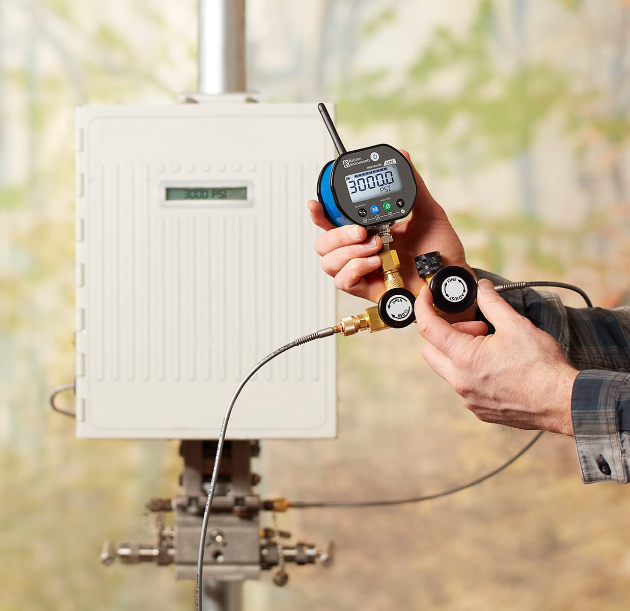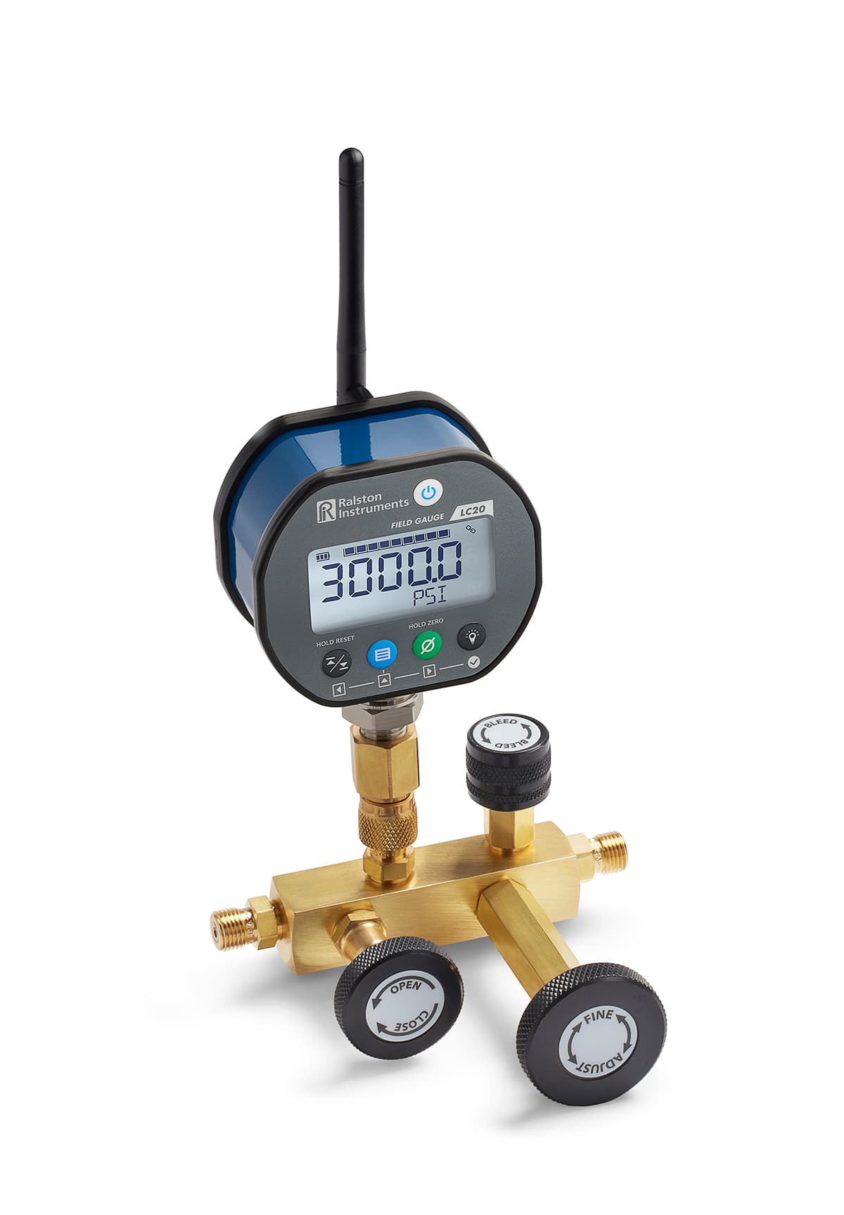 Perform static pressure calibrations using nitrogen with included calibration manifold, pressure gauge and hoses