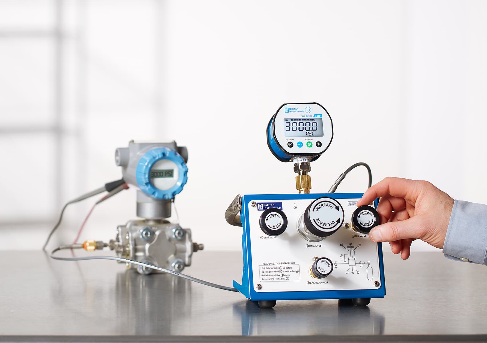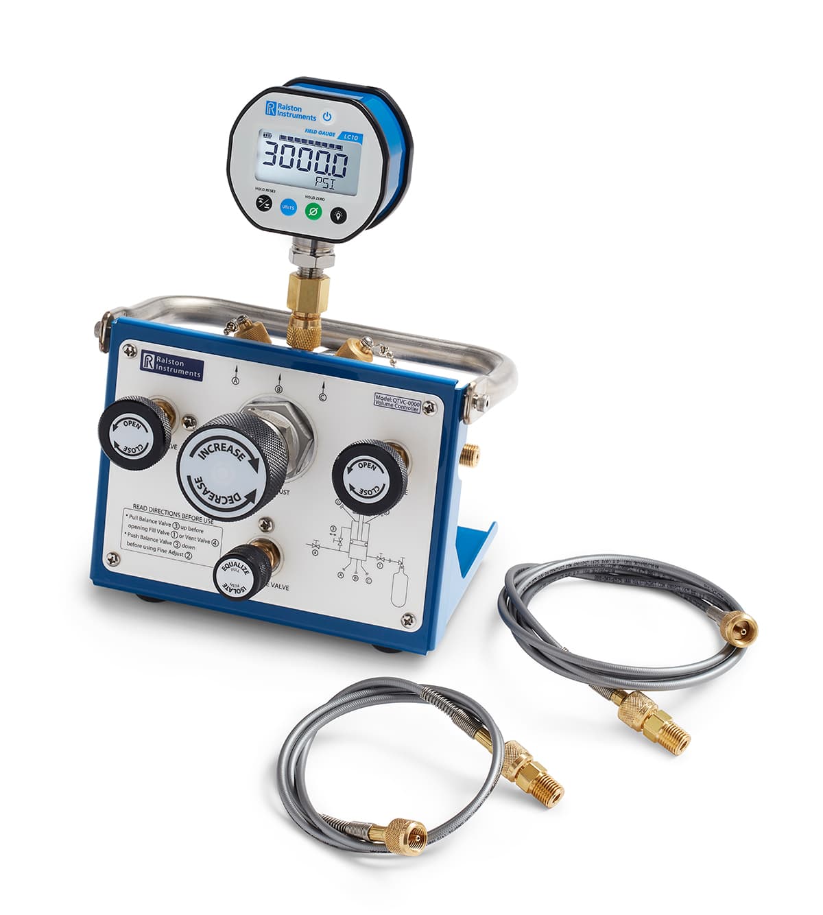 Connect to and calibrate both very low or high pressure instrumentation using included volume controller and pressure gauge
