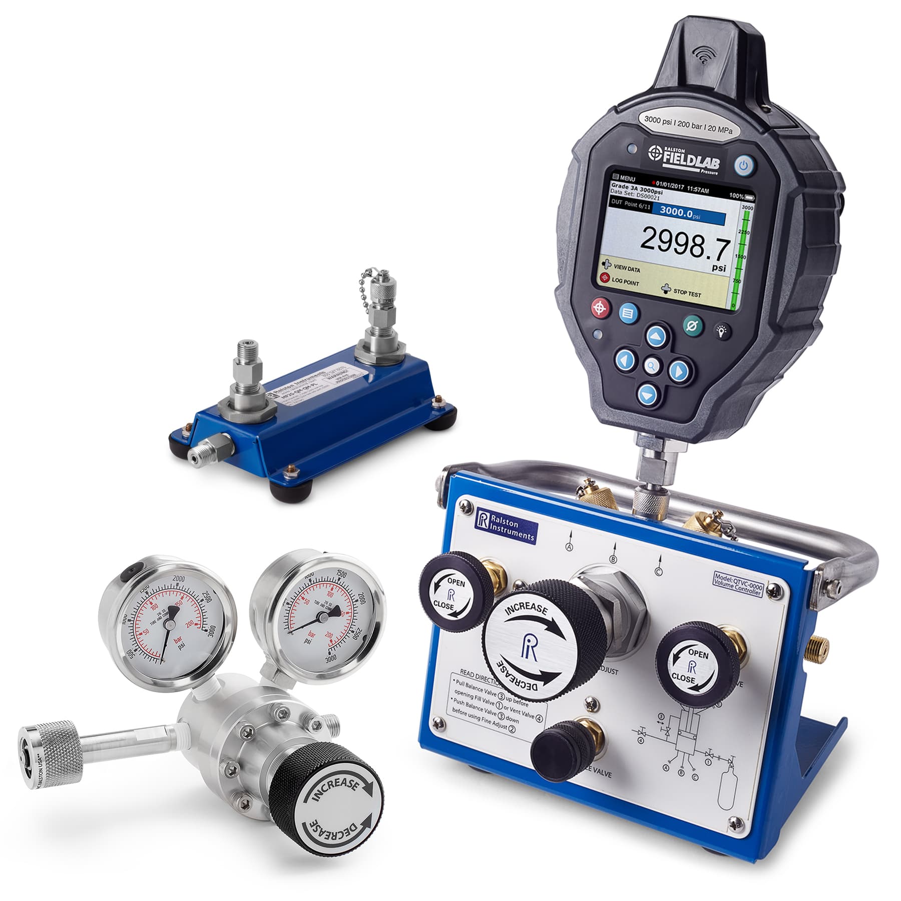 3000 psi / 20MPa calibration kit with Wireless FieldLab, 2 port manifold and hoses