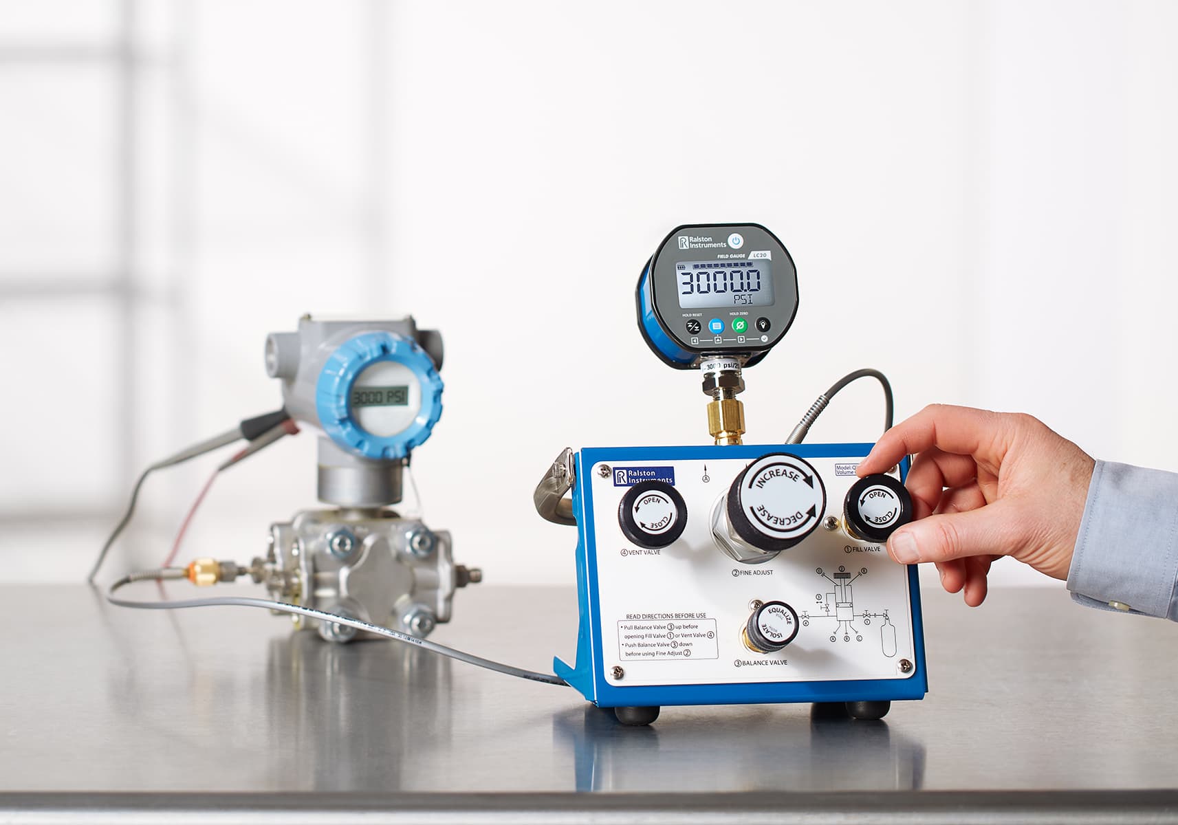 Connect to and calibrate both very low or high pressure instrumentation using included volume controller and pressure gauge