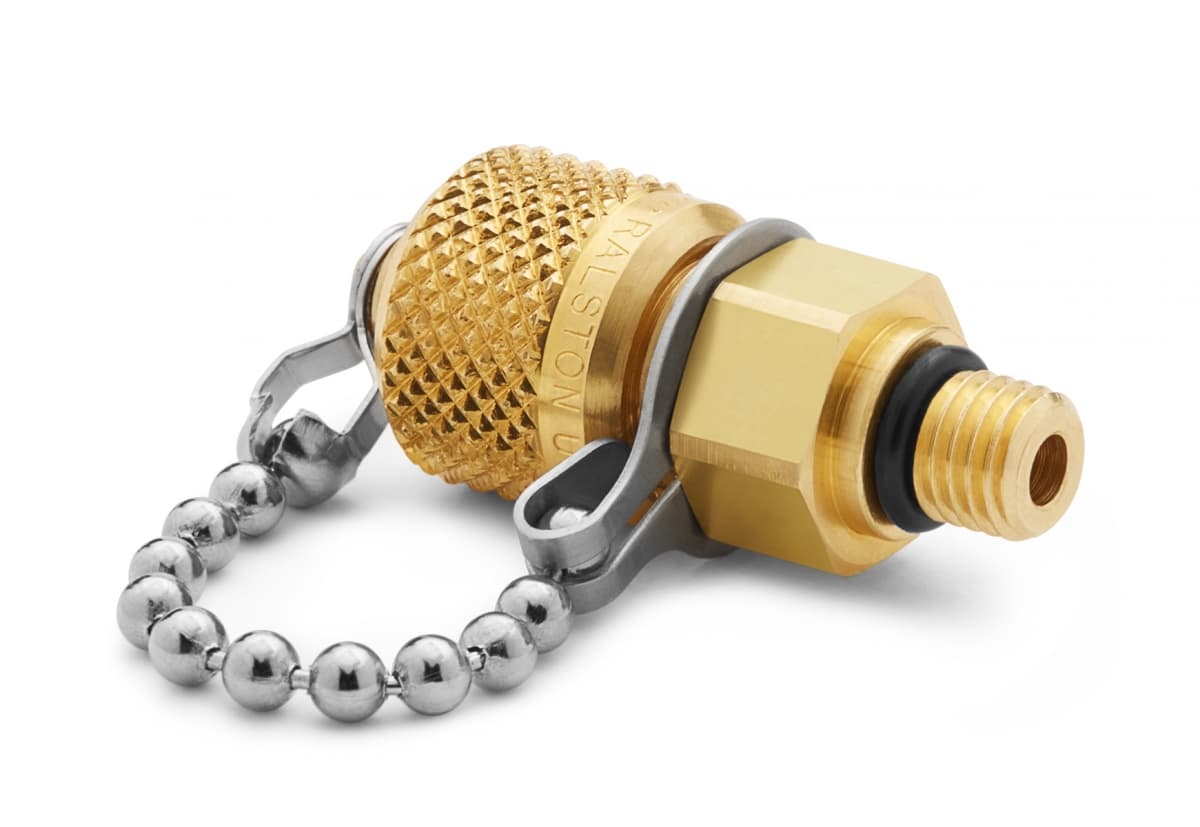 5/16-24 SAE Male X Male Quicktest outlet connection with cap and chain, brass