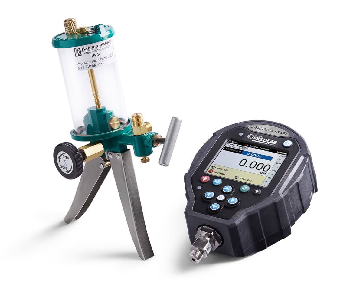 Pressure source and gauge in one hand. Directly connect to a process connection and calibrate using your precision gauge.