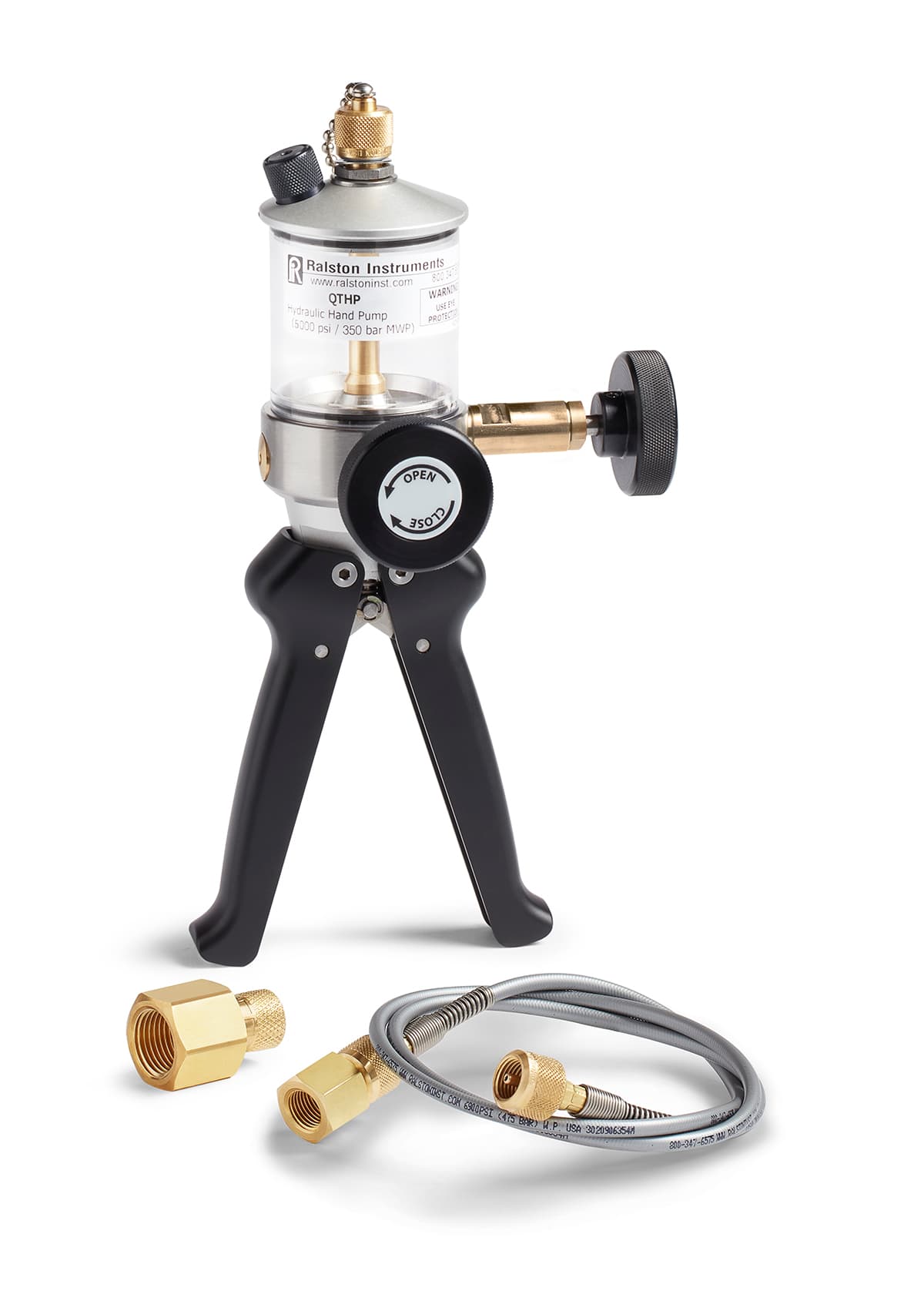 5kpsi / 35 MPa Hydraulic hand pump, 2 Quick-test outlet ports, 1 meter hose, 1/2" FBSPP gauge conn., 1/4" FBSPP Process conn.