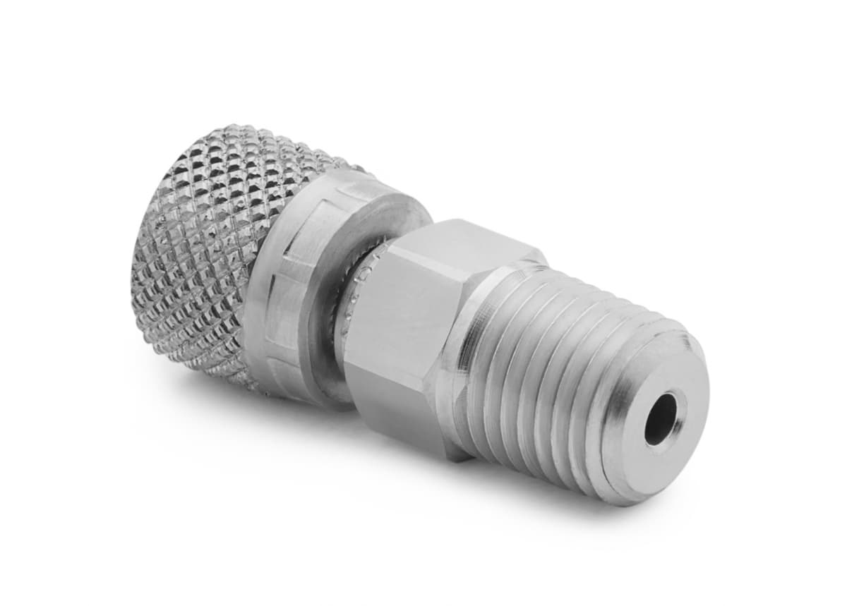 Quickly connect a pressure calibrator or other pressure device with Female NPT connections to Ralston hand pumps or nitrogen calibration equipment