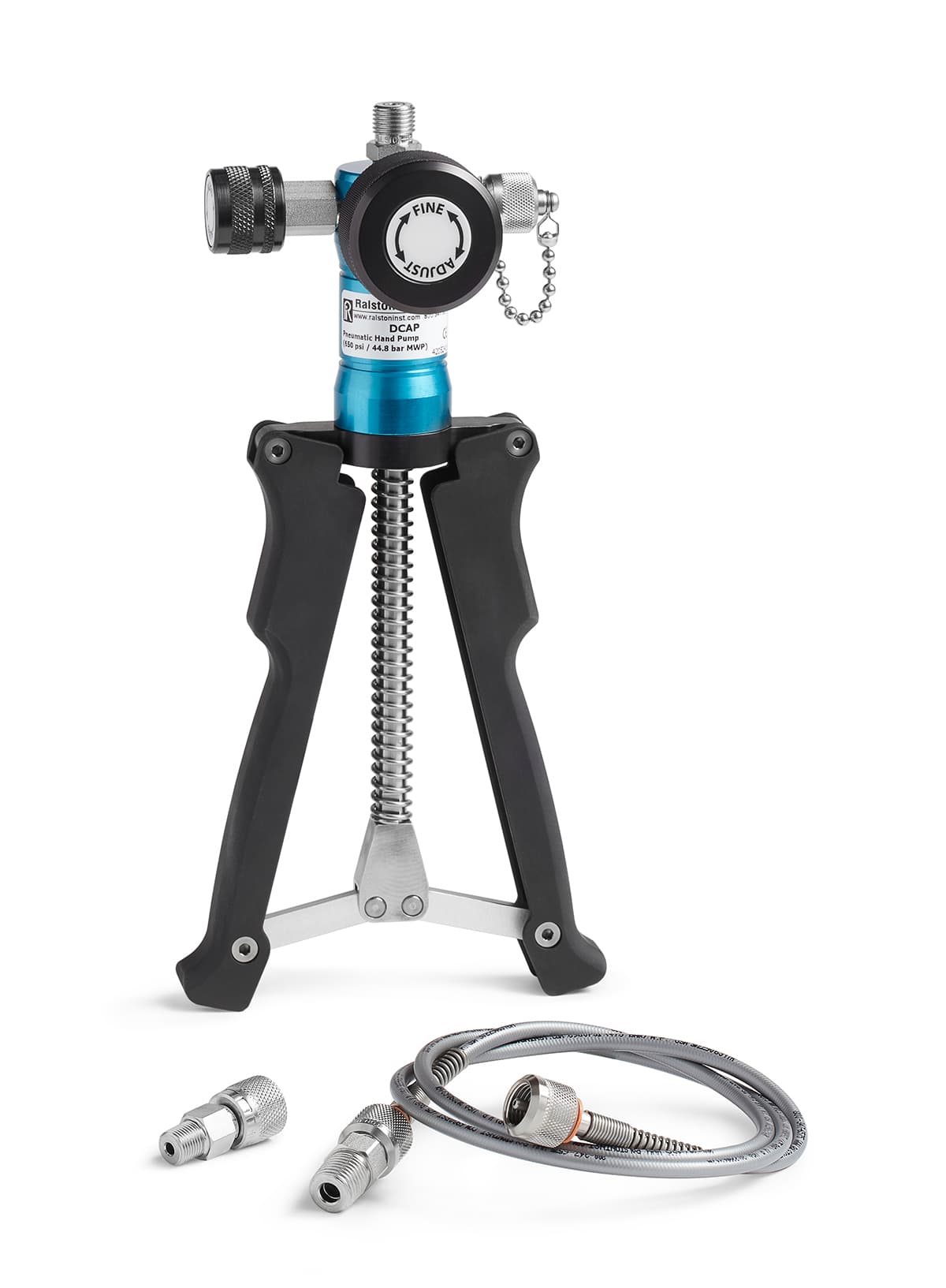 650 psi (45 bar) pneumatic hand pump, 3ft hose, 1/4" Male NPT process conn, 3 ft hose, 1/8" male gauge connection