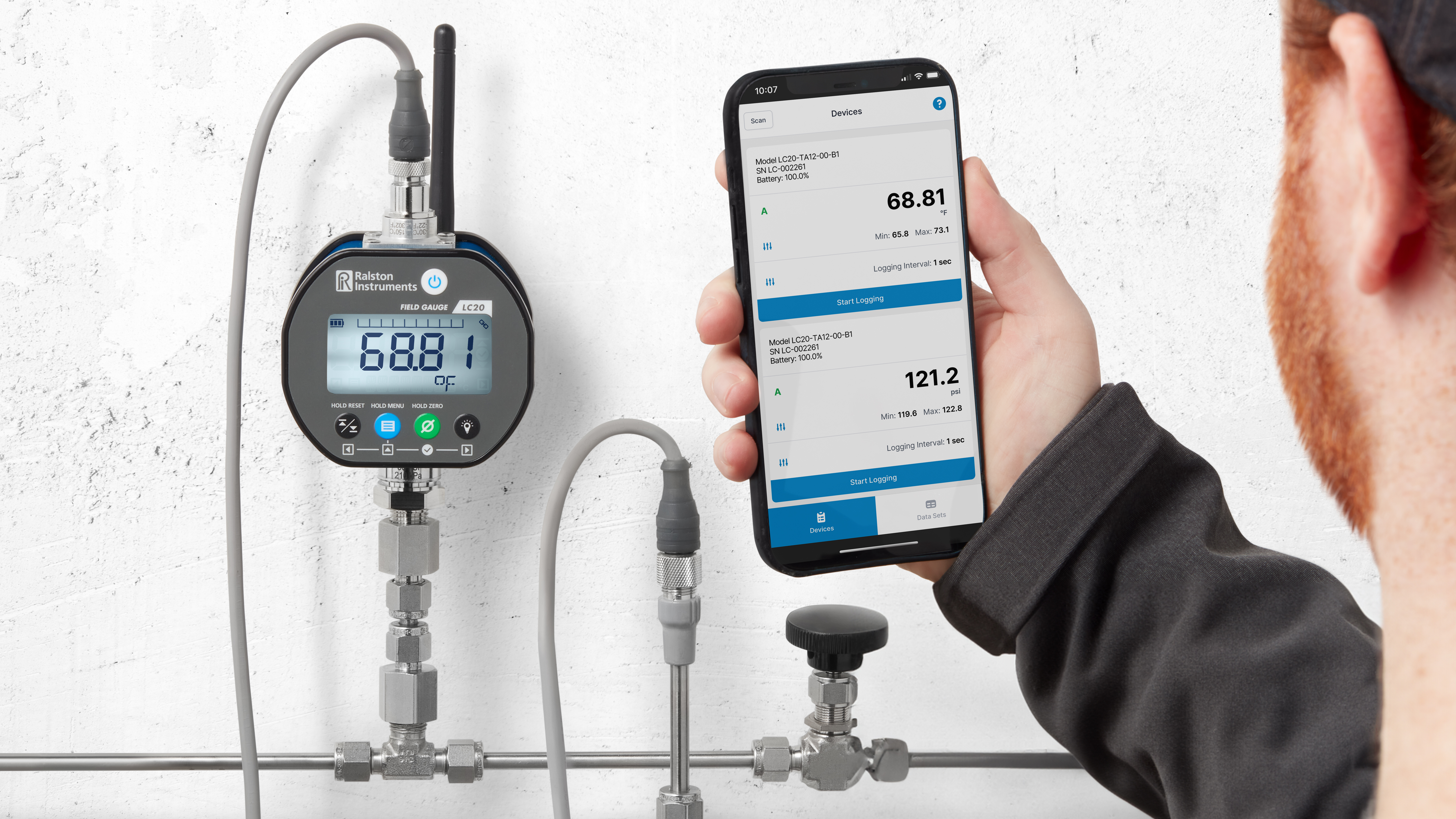 The new Pressure / Temperature Field Gauge LC20 with Bluetooth gives you the freedom to monitor and log both pressure and temperature from a mobile device. Use the FieldLab Mobile App to initiate pressure and temperature logging, record and monitor tests at selected intervals, and easily share data over email, network drives, or text message.