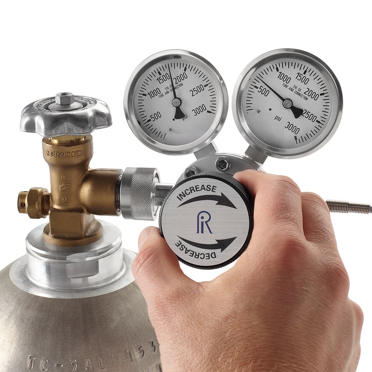 3000 PSI Regulator, 2 pressure gauges, BS 341 type 3 inlet connection, Male Quick-test outlet conn. kit