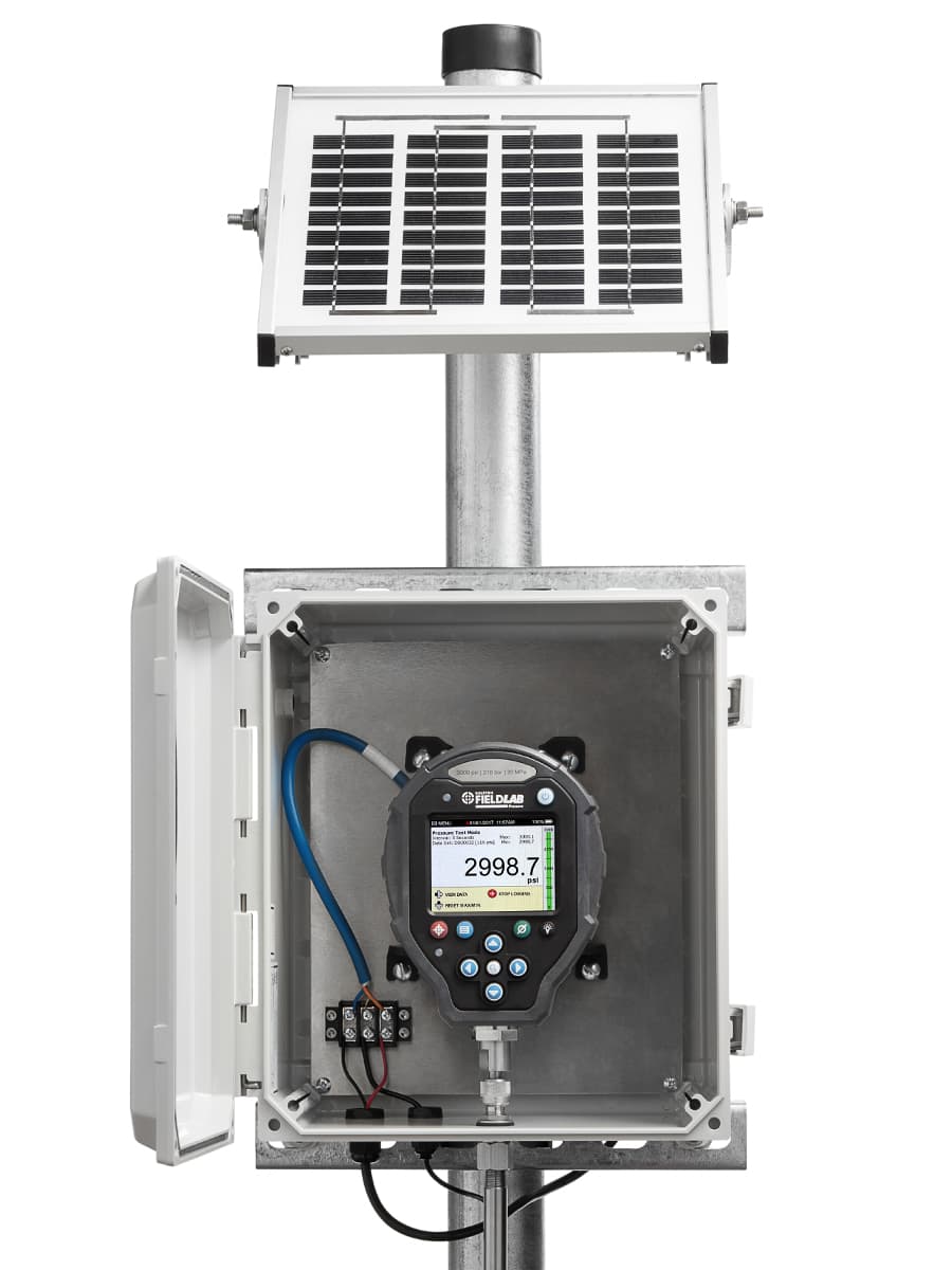 Pressure FieldLab, 3000 psi / 200 bar / 20 MPa in Weatherproof enclosure and solar panel with pole mounting hardware