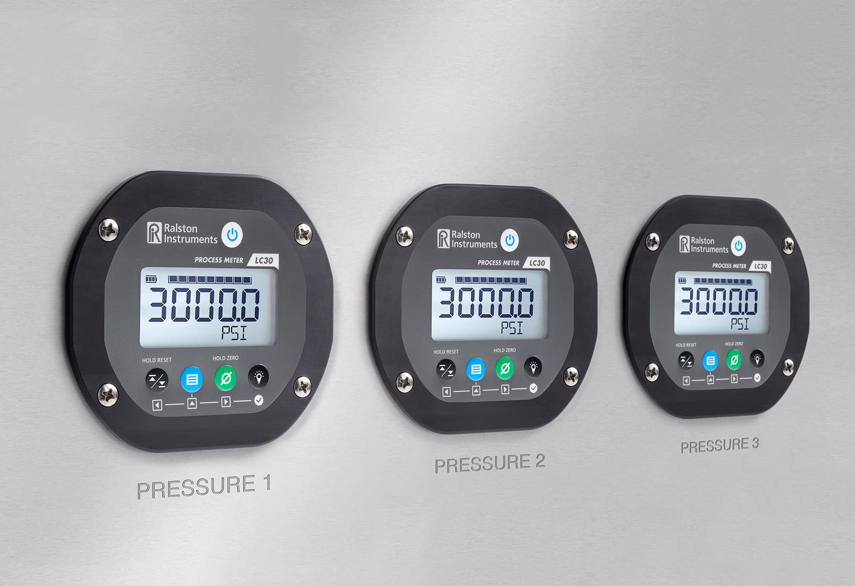 The LC30 is a robust device that measures and displays pressure readings on a large, backlighted screen.