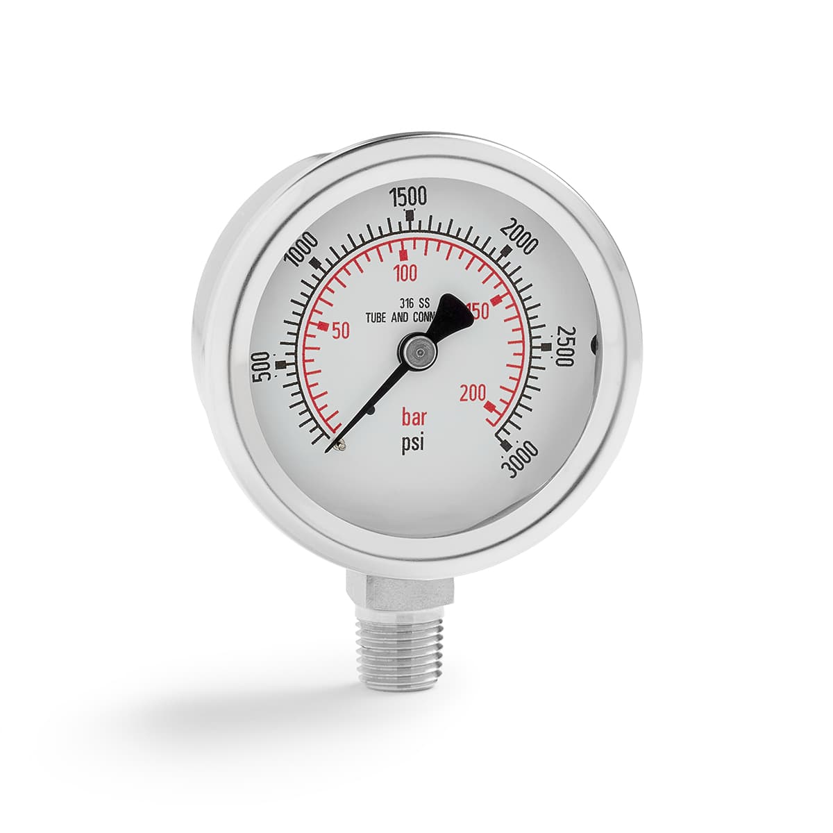 Analog pressure gauge with 1/4" Male NPT lower mount.
