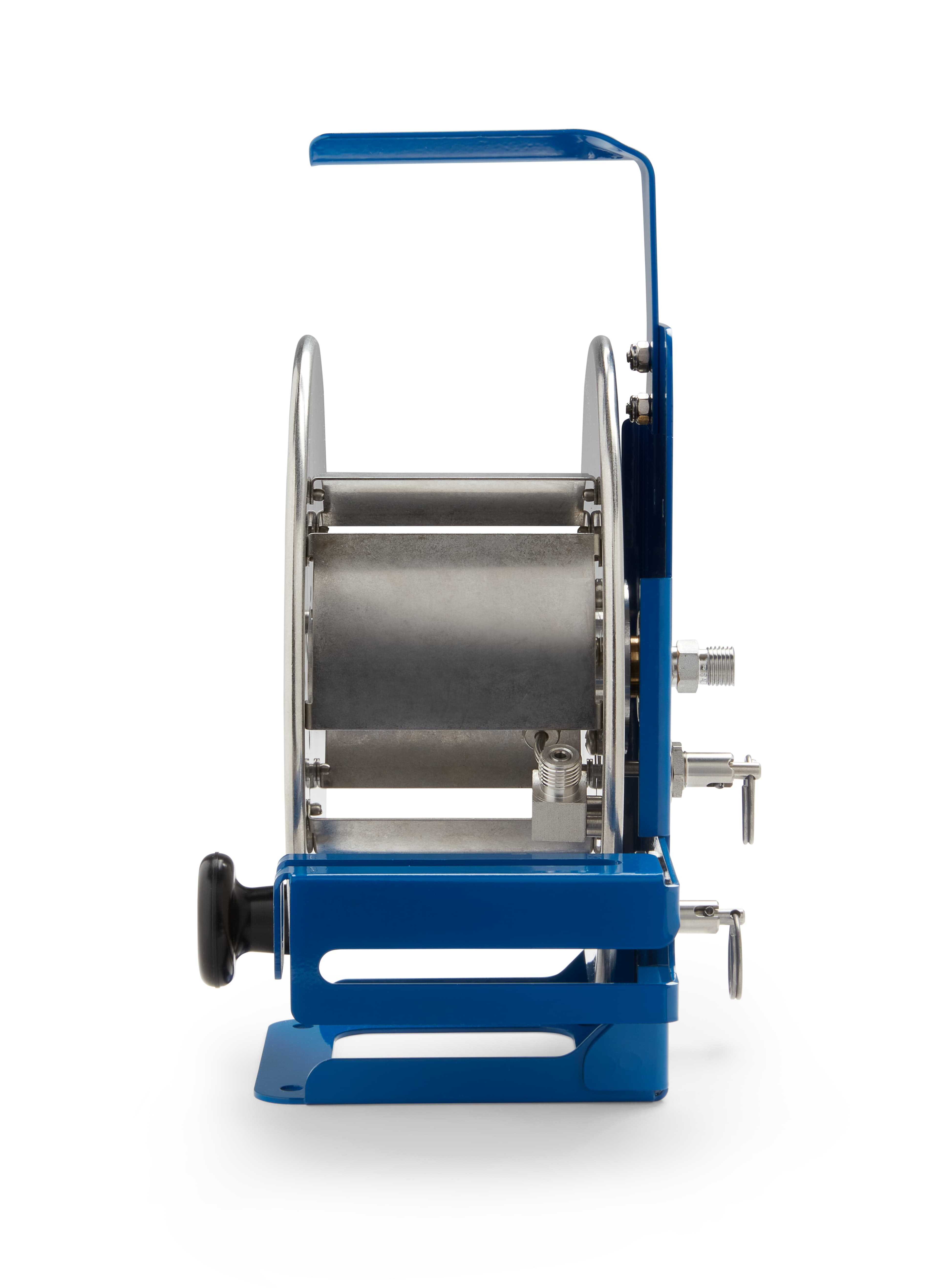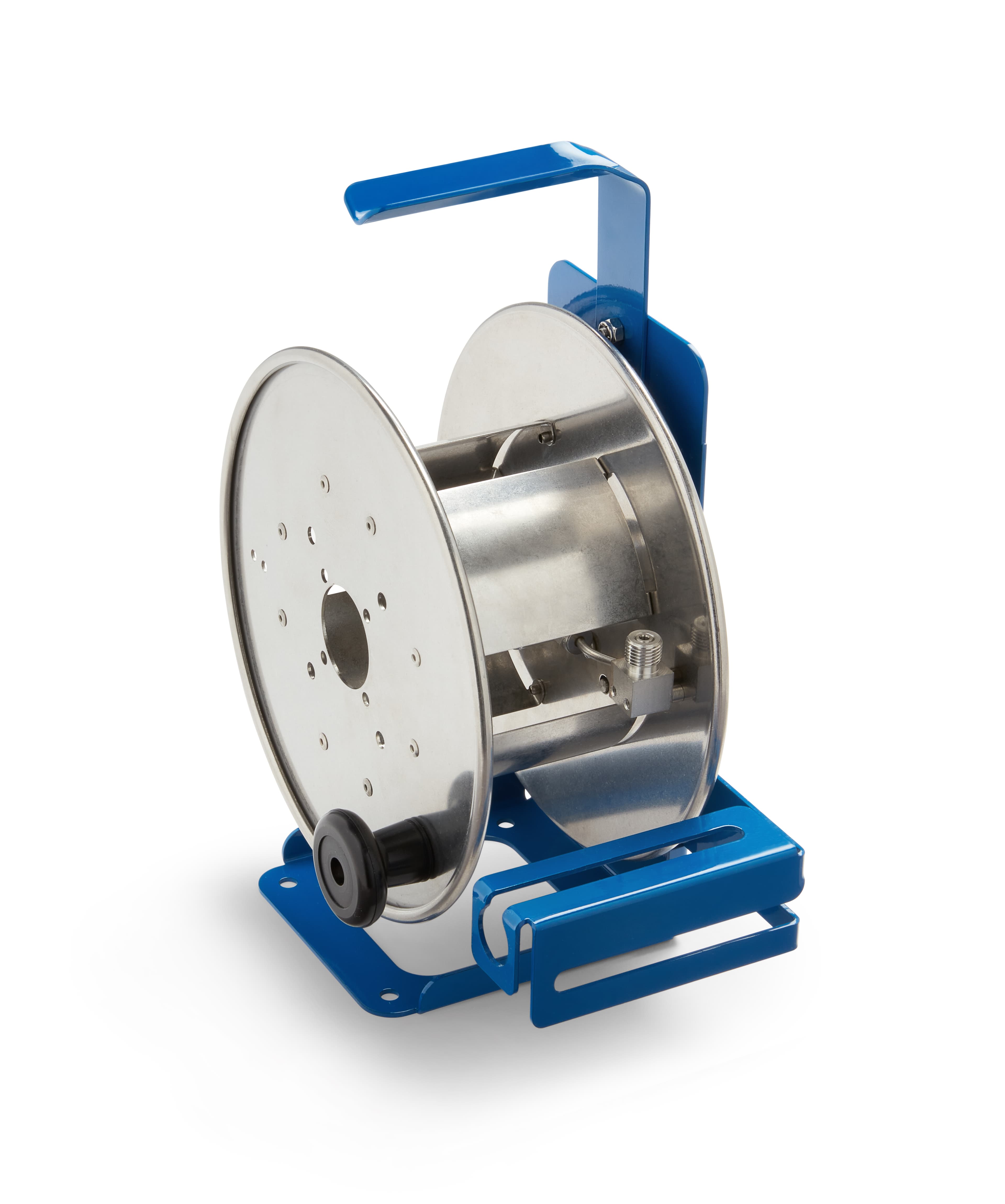 The Quick-test hose reel is an innovative solution for storing Ralston Quick-test hoses. It includes inlet and outlet ports, a brake and locking pin and multiple mounting options.