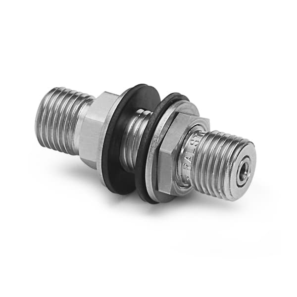 Excellent for safely connecting two Quick-test hoses through an enclosure, truck, or panel wall
