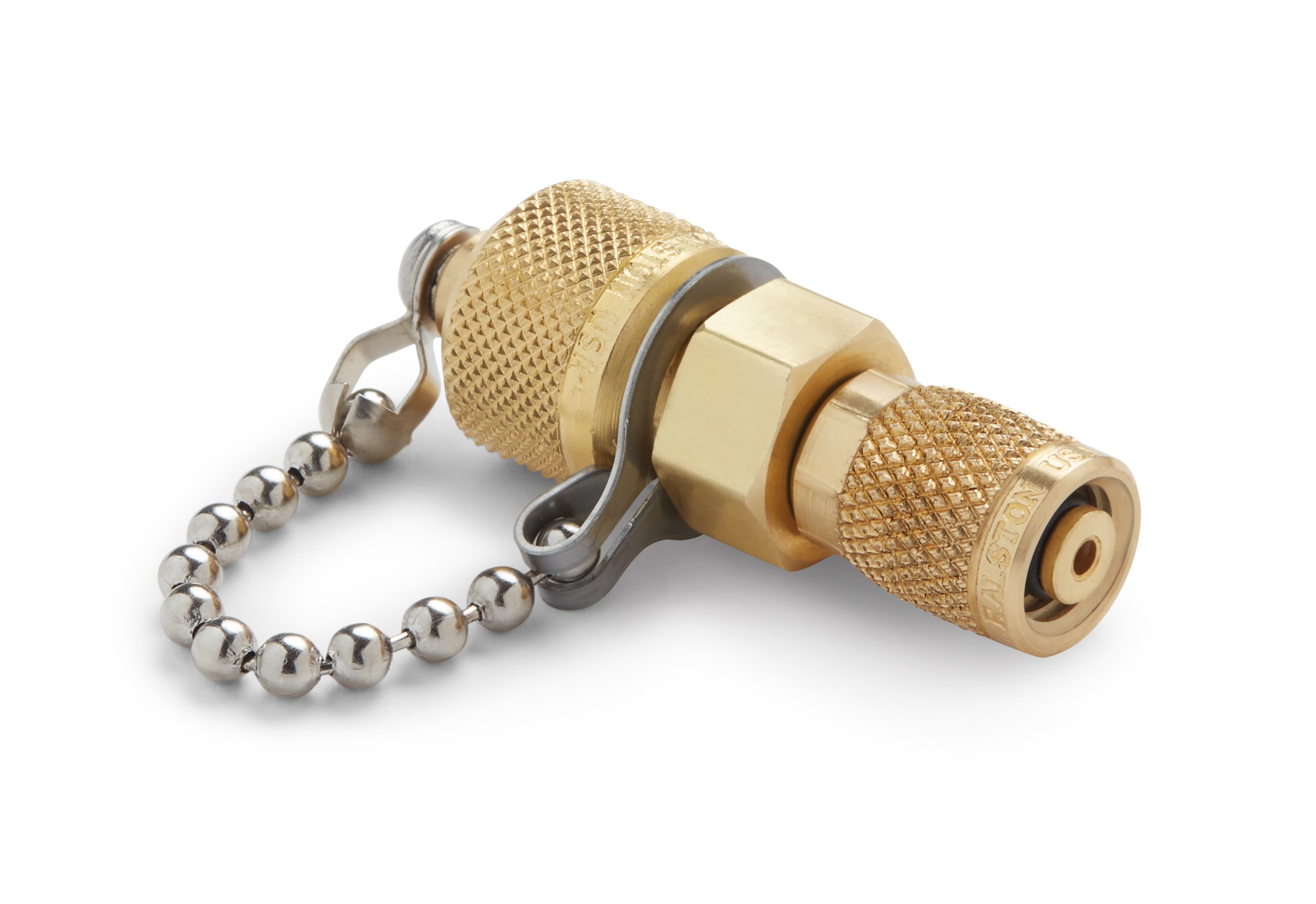 Metric 10 x 1.5 mm Female with o-ring seal x male Quick-test with cap and chain, brass
