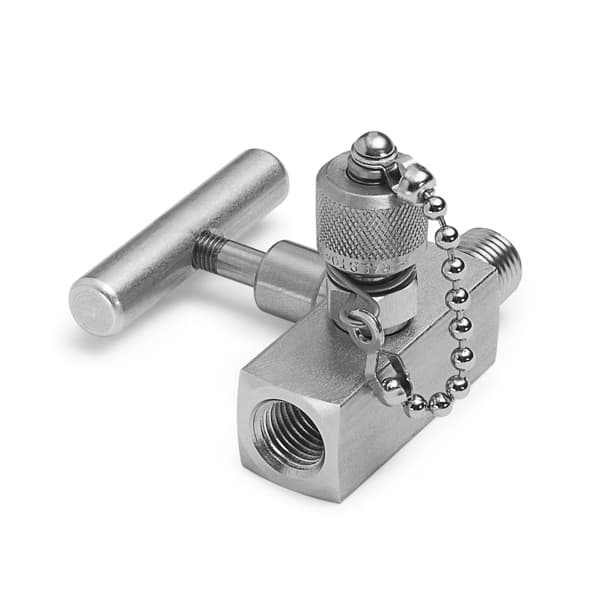 Install between a pressure gauge and the process and isolate the process from the gauge to perform a calibration of the gauge. After completing the calibration open the valve and place the gauge on-line, all without blowing down the system.