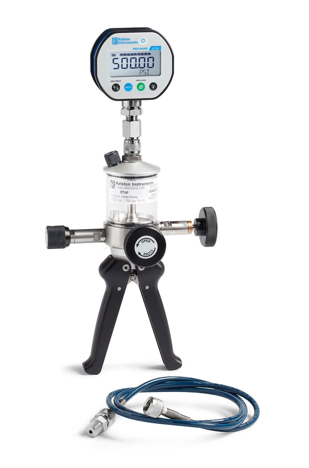 10kpsi / 70 MPa Hydraulic hand pump, 3 ft hose, 10,000 psi digital pressure gauge