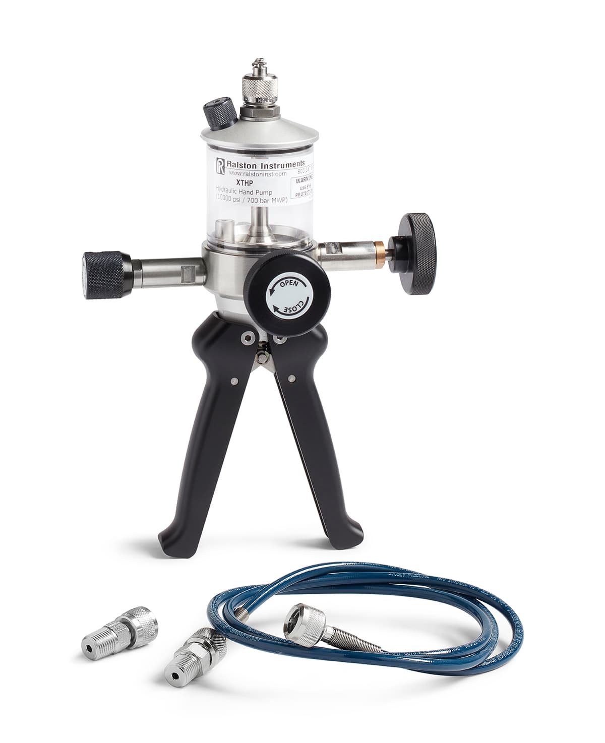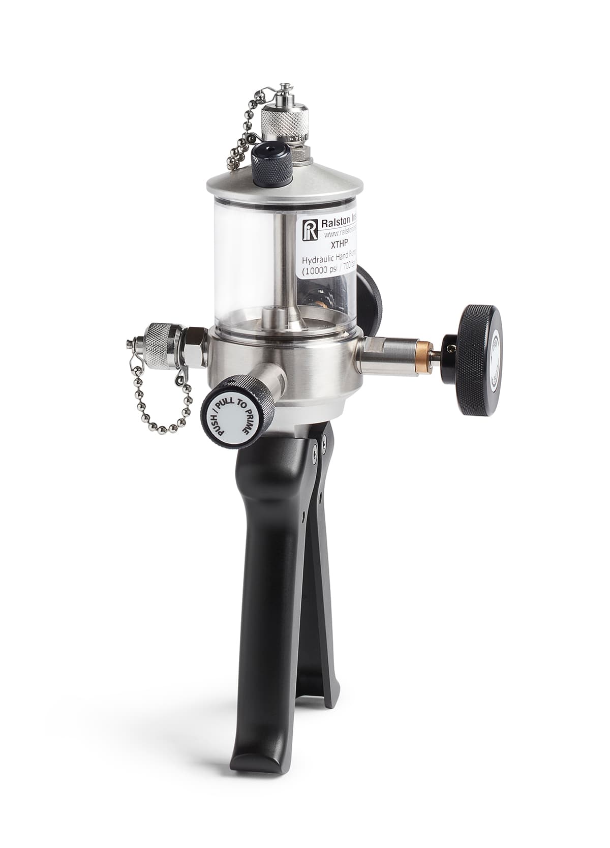10kpsi / 70 MPa Hydraulic hand pump, 2 Quick-test XT outlet ports, 3 ft hose, 1/4" MNPT gauge conn., 1/4" MNPT Process conn.